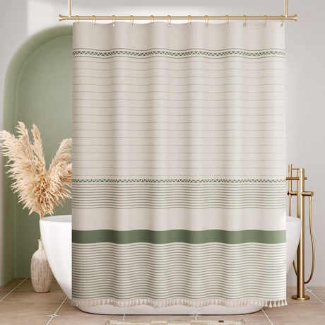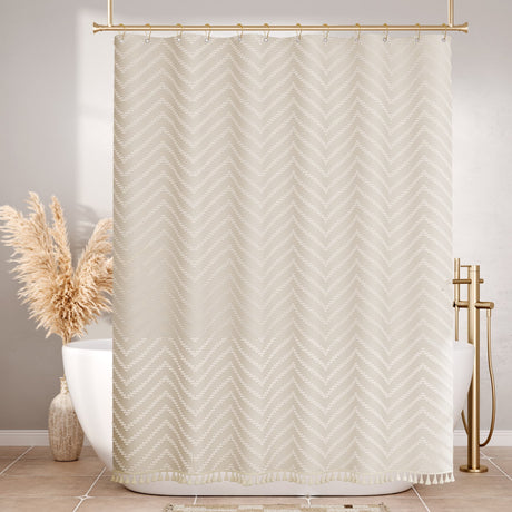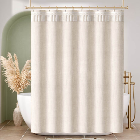 AmazerBath Farmhouse Shower Curtain with Tassel, Tufted