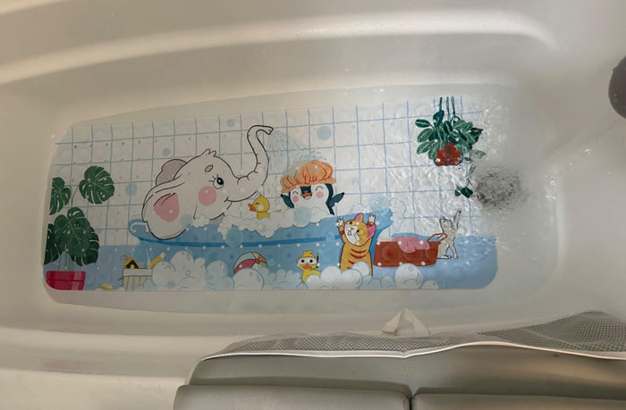 This bath mat is perfect for my 11 month old! She is WILD and doesn’t slip when she runs around in the tub. It doesn’t lift either and will stick even if the tub is wet. It’s comfortable as well.