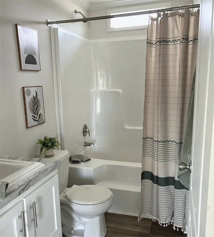 When redecorating my bathroom, this was the first thing I bought. I knew I wanted to go for a clean, white, spa-like feel, and this shower curtain really brings together the whole vibe!