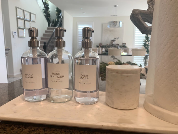 Love love these simple dispensers, they are the perfect accessory in any room. They dispense ample amount of product and are sturdy. Also added personalized labels.
