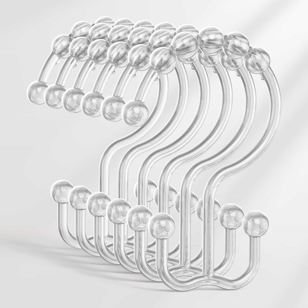 Plastic Double Shower Curtain Hooks, Set of 12