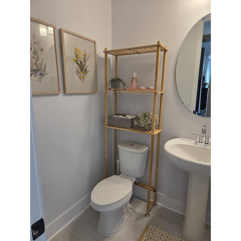 AmazerBath Bamboo Over The Toilet Storage Shelf - Natural / Three-Tier/10.04"D x 25.2"W x 70.87"H is backordered and will ship as soon as it is back in stock.
