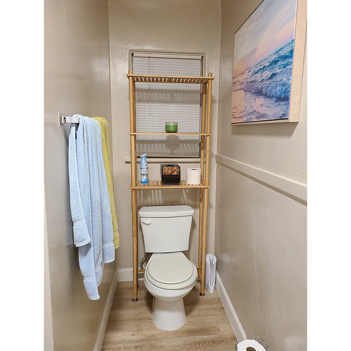 AmazerBath Bamboo Over The Toilet Storage Shelf, White Color