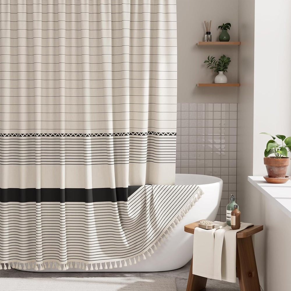 AmazerBath Farmhouse Shower Curtain with Tassel, Stripe