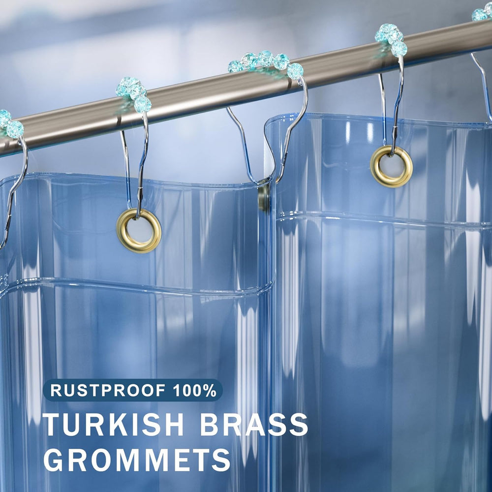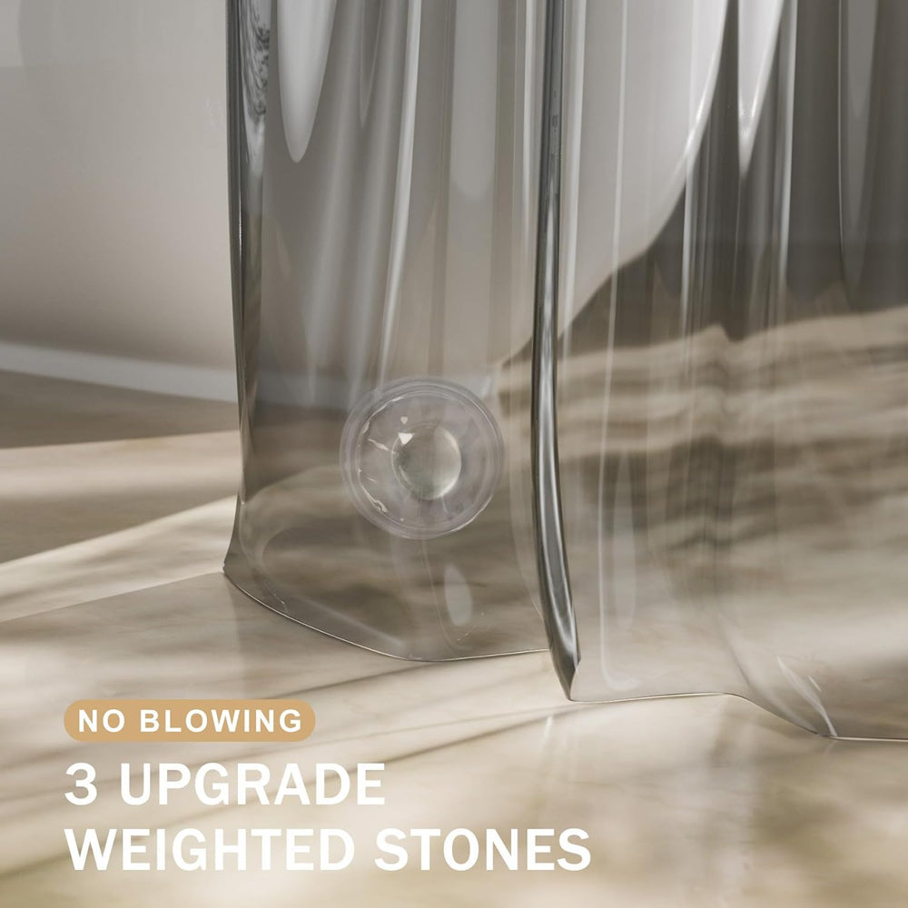 EVA (Ethylene Vinyl Acetate) is a non-chlorinated, eco-friendlier material often used as a safer alternative to PVC. It’s smooth, lightweight, and water-repellent — perfect for shower liners.